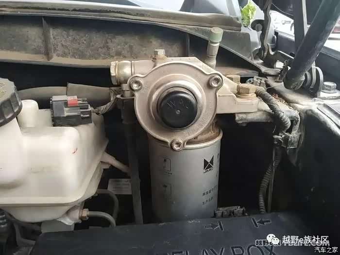 1.两人操作法,适合有同伴结伴而行者,车主打开引擎盖连续按压柴滤排气按钮如图一中发动机舱右上侧黄色方框内黑色按钮,图二是细节图,按压的同时,发信号请同伴在驾驶舱踩刹车按打车按钮起动发动机。重要的事情说三遍黑色按钮是连续按压,不是按住不动,连续按压,不是按住不动。二人配合默契同时操作方可着车。 原理就是按压柴滤排气按钮人为增大柴油泵给油压力增大喷油量,利于着车。我在摸索出方法二之前,一直使用此方法排除故障屡试不爽,唯一缺点就是需要二人默契合力完成,一人无法操作。