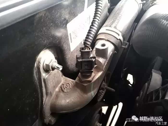 2.若是一人独自驾驶找不到帮手,可用此方法,拔下图一中红色方框内水温测量测点插头,图三是细节图,瞒天过海,使行车电脑得不到发动机水温信息,误以为冷车打火,自行运算后加大喷油量,完成顺利着车。(着车后复原此插头)此方法的弊端就是只要拔插过了水温测点插头后,发动机故障灯会亮起,每次打火不管环境温度多少,都要增加车辆正在加热中的步骤,加热塞会消耗大量电瓶电量,每次打车都有此步骤,这个很恼火。后期只有通过电瓶断电或者维修站消除故障码来解除发动机故障灯。人品爆棚遇到了极品自愈系大胜,我的大胜是放一宿第二天清晨自动消除此发动机故障码。大大咧咧的兄弟无所谓,像我这种有强迫症的不愿看到发动机故障灯只好尽量找帮手用方法一,实在没招了才用方法二。