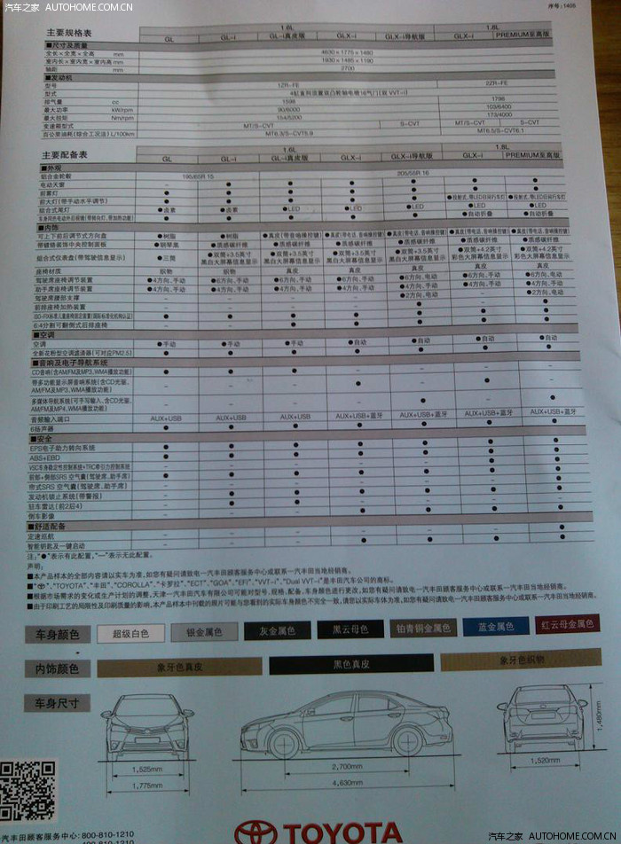 这个是当时选车时4儿子帅锅给的规格表,懒得带,拍个照方便看即是