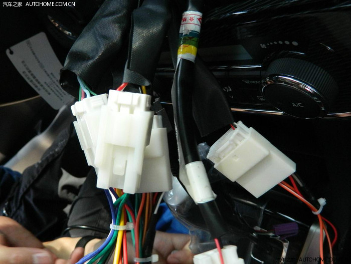 师傅插好线的样子,都是原车插头直接与纽曼车PAD2直接对插,无任何破线,连我的原车倒车影像都没破线就支持了,赞下纽曼的这个设计,想的周到。