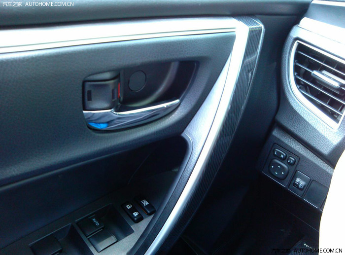 车门锁,旁边的装饰条和中控上的碳纤维一样的,不错不错