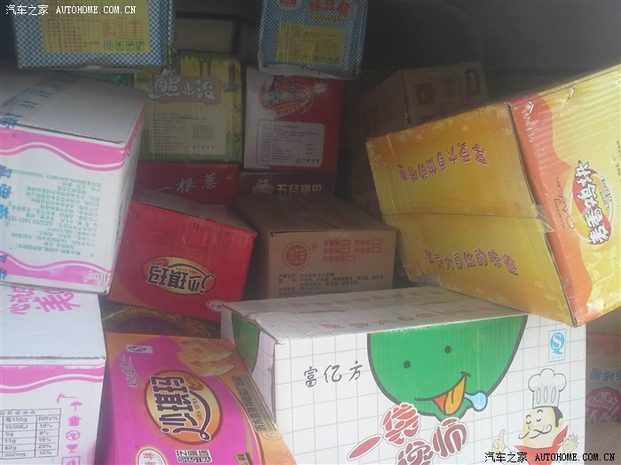 能压的放下面,轻的散装饼干放上面,装满了,准备打道回府,又到了那个路,哎,现在成尘土飞扬了