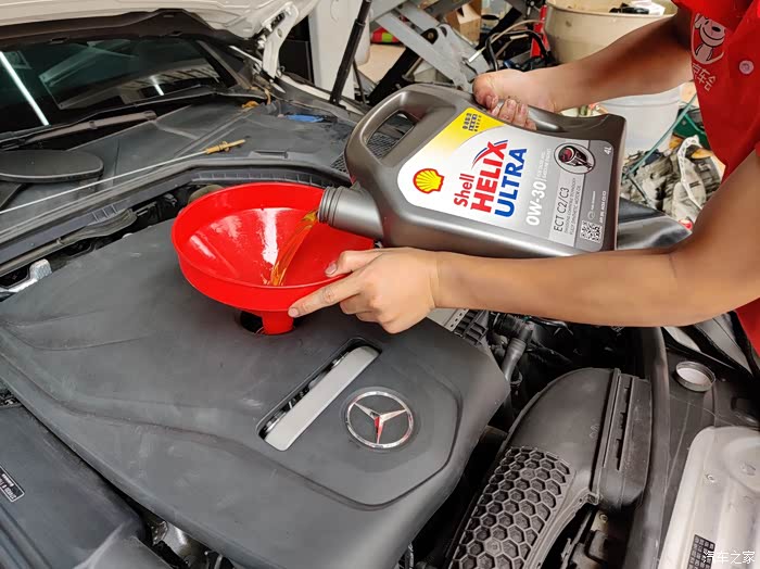 奔驰M274 2.0T发动机更换港版壳牌0W30机油