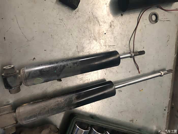 原来的两个后减震,其中一个被我压缩到了最底下。放在工具台上,拿出手机拍了一张照片这个时间段内,才弹出来了这么一点。PHC减震我没试,听师傅说回弹要顺畅的多。