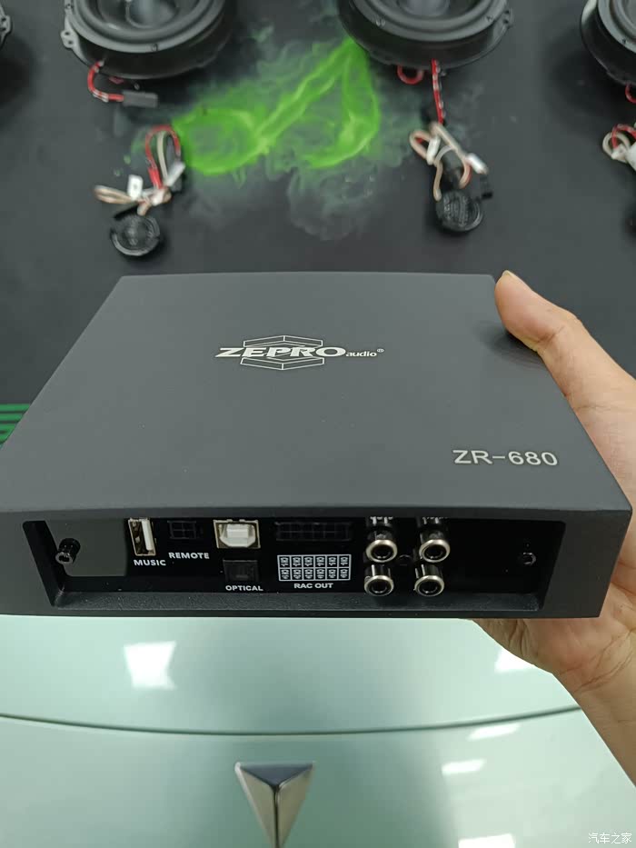 我这次选择的改装升级是深圳zepro的定制方案。增加了一个DSP功放,一个后备箱辐射低音炮,后排增加了两个高音。原车的前排两个高音和中低音进行了更换,后排的两个中低音也进行了更换。原车喇叭标识为25W一个,新换的喇叭为60W一个。因此总功率增加了60*8-25*6=330瓦,所以必须安排一个功放(zepro ZR-680)才推得动。新增的功放共有八路通道,我的车只用到六路。剩下两路还可以增加环绕。SL03高配的14个里面就有环绕喇叭。