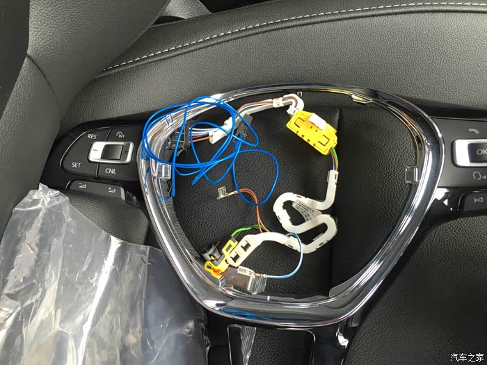 装完之后都有的问题就是,定速巡航按键是没用的,但是定速巡航键变成了喇叭按键了,我个人觉得这样也还好,省得每次按喇叭都去按气囊了,这样手指能直接按巡航按键就可以了,当然,气囊喇叭也还是可以用的。 第二,OK键这里的上下箭头变成了拨杆上下的控制键,但是这个和拨杆上的按键会冲突,就是拨杆上的上下键如果用了的话,方向盘上的上下键就会失效,也就是说,不能同时使用,其他不影响。