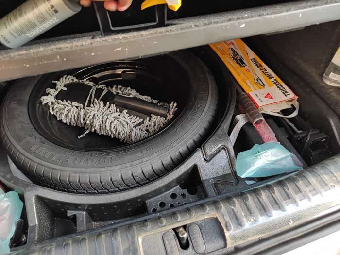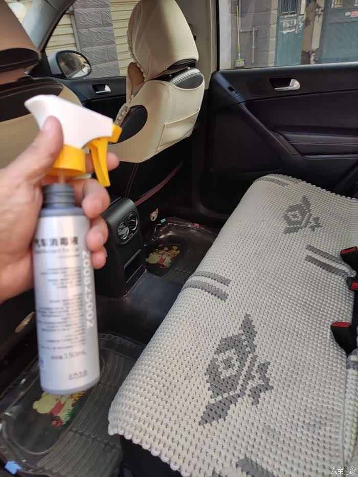 同时把车内和后备箱收拾干净和空调系统消毒一起进行。把车用消毒液装到带有喷头的喷壶中备用。接着启动发动机,打开空调的制冷系统,打开外循环,风量调到最大。用装有消毒液的喷壶对准空调进风口喷射消毒液。整瓶车用消毒液是150ML。按照要求空调系统消毒用消毒液90ml,车内和后备箱消毒60ml。也就是空调系统消毒喷总量的五分之三。接着把剩下的直接喷洒到车内和后备箱各个位置,包括车内各个角落和车顶部。特别是脚垫和后备箱垫的下面,比如放备用车胎的位置,我的三年都没有打开过了,还有脚垫下面的原车地垫,做到尽量不留死角。喷洒完成后关闭所有车窗半个小时以上,我因为是晚上开始的,所以准备密闭车窗一夜效果更好。空调系统消毒打开制冷系统十分钟左右就可以了,然后关闭发动机。整个消毒工作就大功告成了。