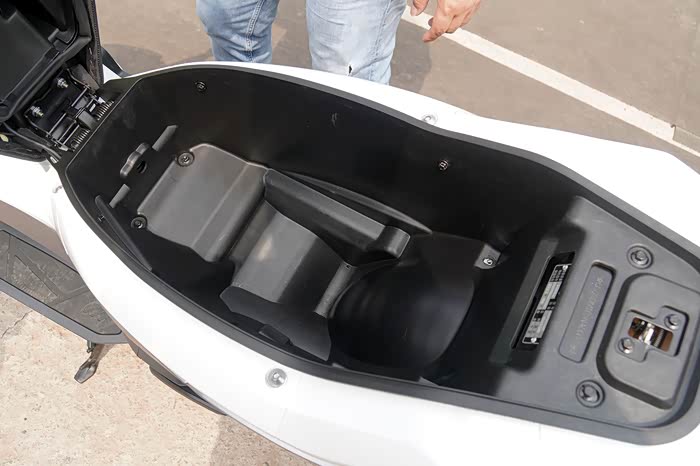 从本质上来说,Real5T仍然是一款中等体型的踏板摩托车。因为电池包完全中置,设计师给了Real5T形状与Nmax相当,接近33升的储物空间,其深度能够妥善的放置一顶全盔再加上诸如手套雨衣之类的杂物,完全能够满足我们日常的载物需求。