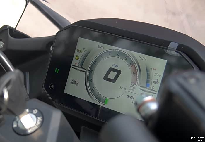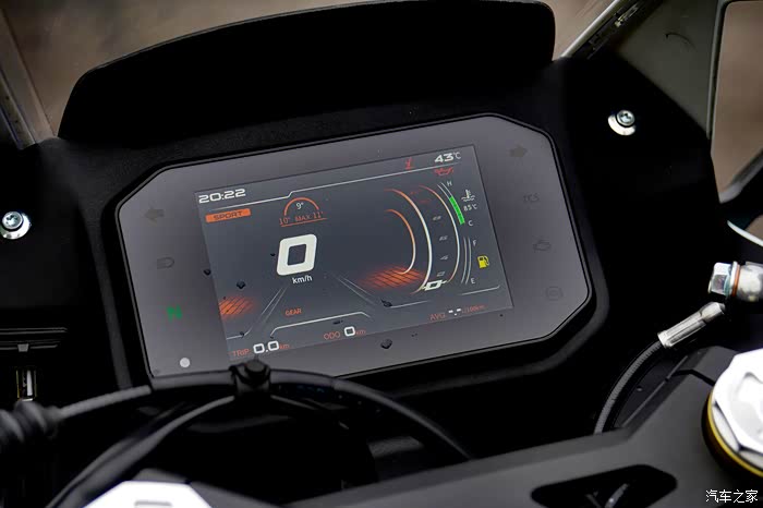 这块彩色TFT液晶仪表对于无极骑行这款不算是什么新鲜配置,搭载到RR525上重新进行了UI用户界面设计也挺正常,不过从仪表的显示数据上小编还是发现了有意思的地方,时速表上方的半圆形图案正显示着目前车身的左右倾角度数。我们尚不清楚这个侧倾角度的显示是否可以影响到ECU和ABS的工作策略,但倾角传感器一定是实现更高阶电控功能的必要参数。