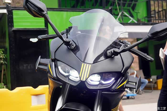 车头导流翼片或者叫定风翼是随着近年来越发重视的空气动力学对摩托车操控的影响而出现在MotoGP赛车上的车头整流装置,虽然市售仿赛车款上的定风翼究竟能增加多少下压力,其作用几何目前仍然比较玄学,但为整车造型营造出的运动感是真的增加了。250RR新增的定风翼采用了双层结构,位于四透镜LED头灯两侧。