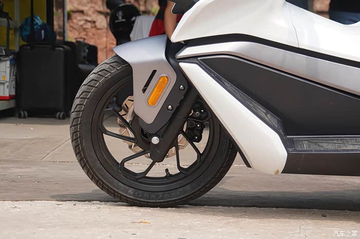 从体量来讲,Real5T跟大家比较熟悉的车型如PCX、Nmax差不多,它的电池包与多数新能源汽车一样,采用了不可拆卸的动力三元锂电池,89伏54安时的容量NEDC工况续航150公里。顶配版能够使用标准的汽车交流充电桩以1.84千瓦的功率对电池充电,充电口位于常见油车的车头锁位置。