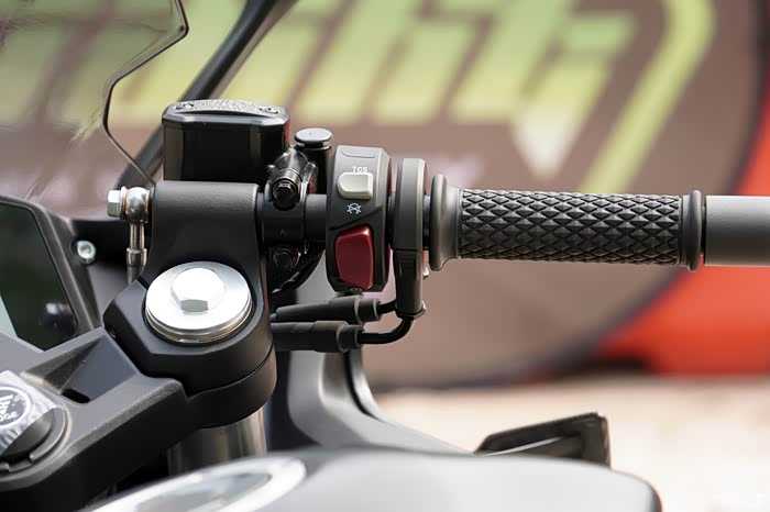 如果没记错的话,无极250RR将是这个级别第一款搭载TCS的国产仿赛车型。如果你的观察足够仔细就能发现之前的单油门拉线也进行了升级。