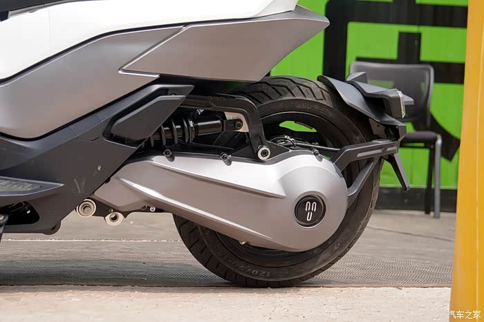 中置电机、多连杆减震、皮带传动、前后14寸轮组,除了燃料不同,这台纯电踏板的整体行驶系统架构与我们熟悉的高端燃油踏板相当接近。最终体现到骑行感受上的差异还是在由BicoseOS管理的3档动力模式以及3挡动力回收力度上。