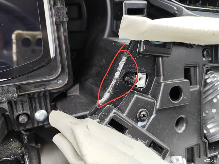 这边会卡住原饰板安装,需要把这个凸起的锯掉