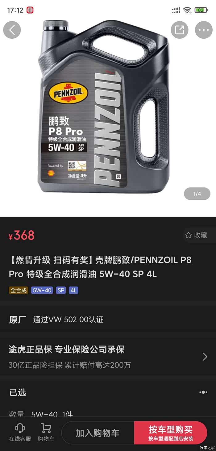 保险送的途虎保养鹏致P8 PRO 5W40 这款机油品质怎么样