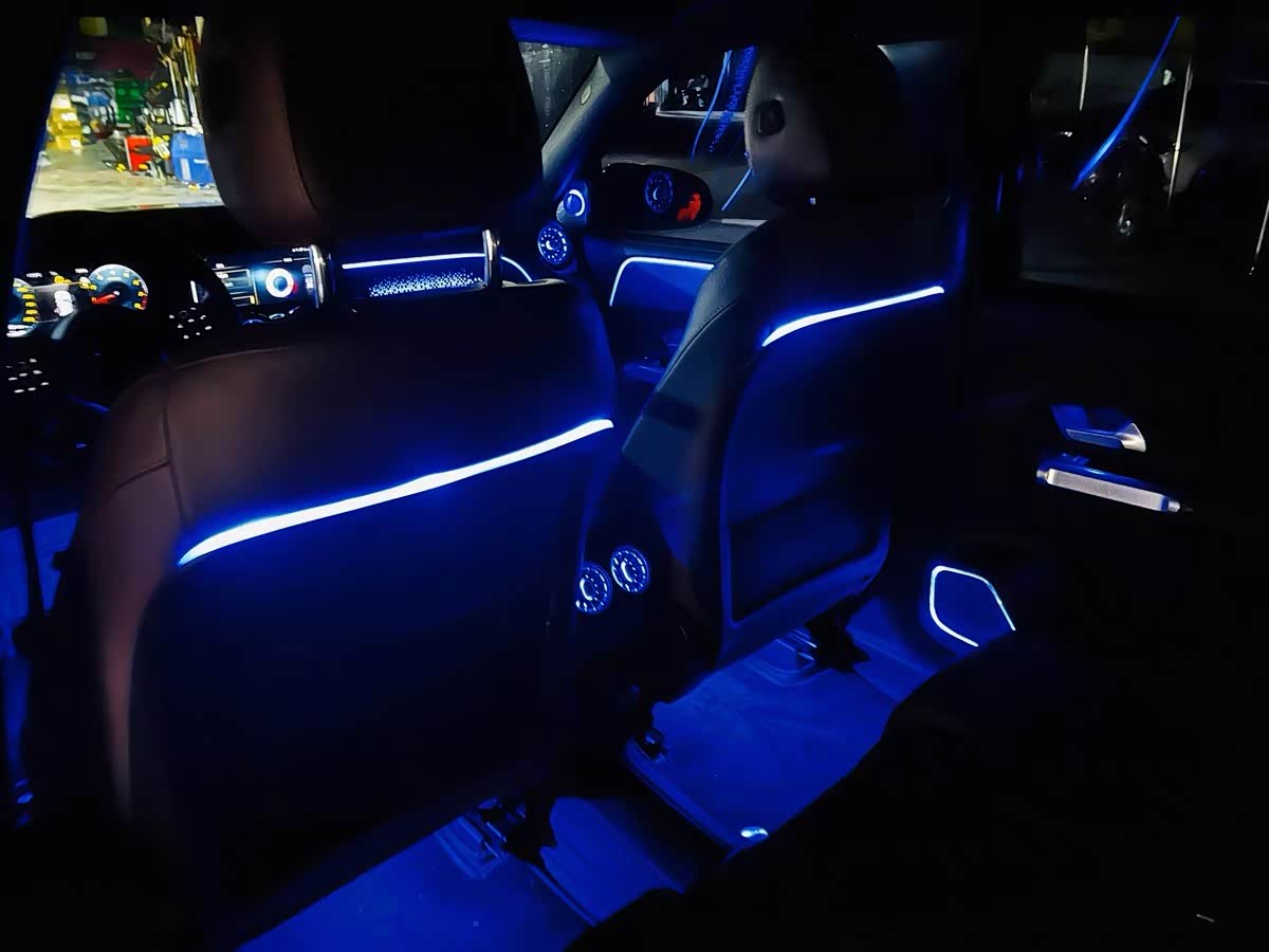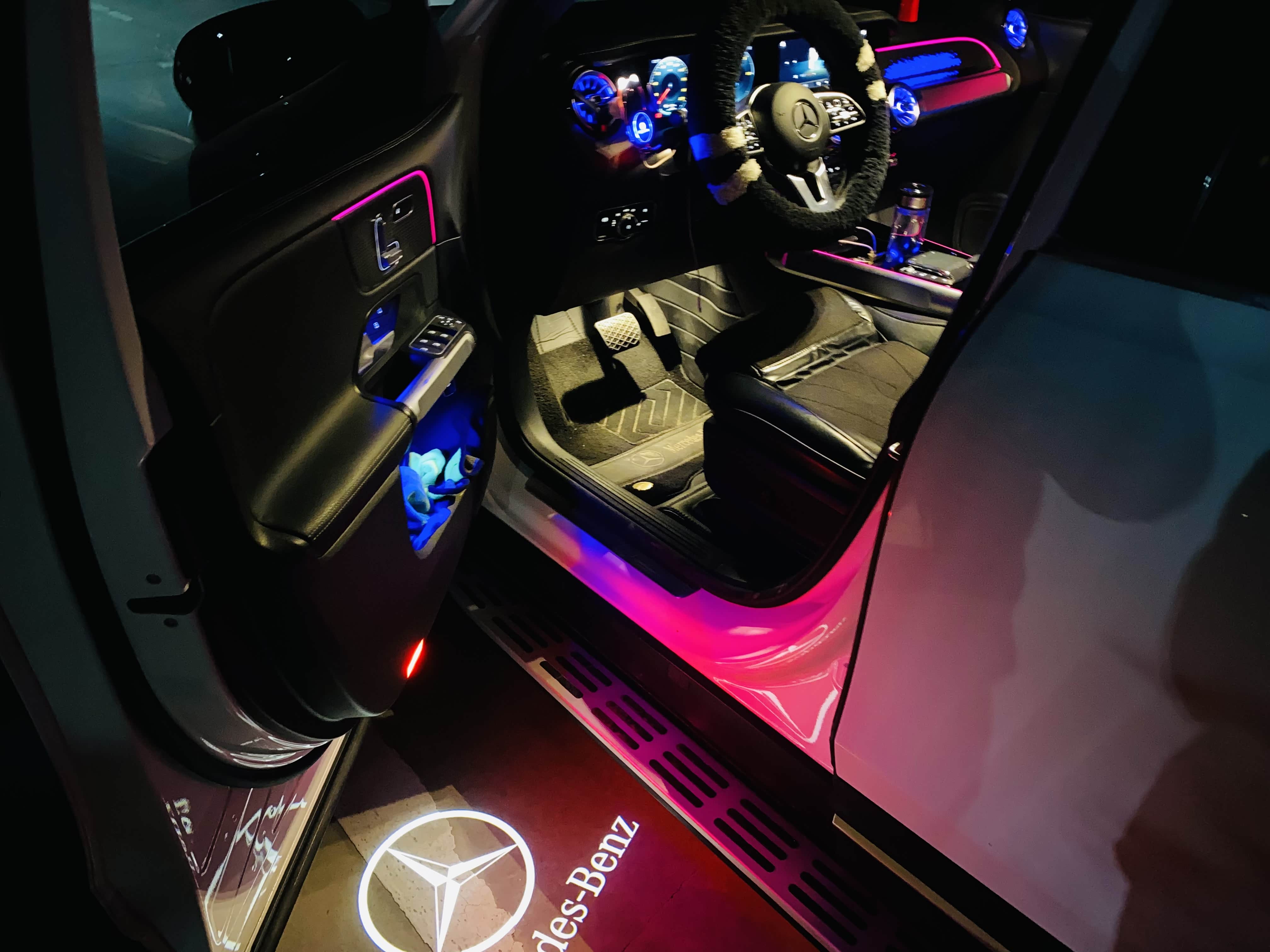 64 色双拼氛围灯成为家庭情绪的调节器。傍晚接媳妇时,暖黄色灯光营造温馨氛围;夜间长途行驶时,深蓝色光影让人沉静放松;孩子发烧送医的深夜,柔和的橙色灯光安抚了焦躁情绪。灯光与驾驶模式的联动充满仪式感 —— 运动模式自动切换为红色,舒适模式变为蓝色,节能模式则是绿色,这种微妙的视觉反馈让机械产品有了情感温度。有次深夜媳妇加班很晚,我接上她往家赶的时候,我们都有种同样的感慨,坐在奔驰车里,是一种愉悦,不是因为他叫奔驰,而是这种仪式感把情绪价值拉的满满。内饰设计真的需要国内车企好好学习一下,开车也可以享受浪漫。