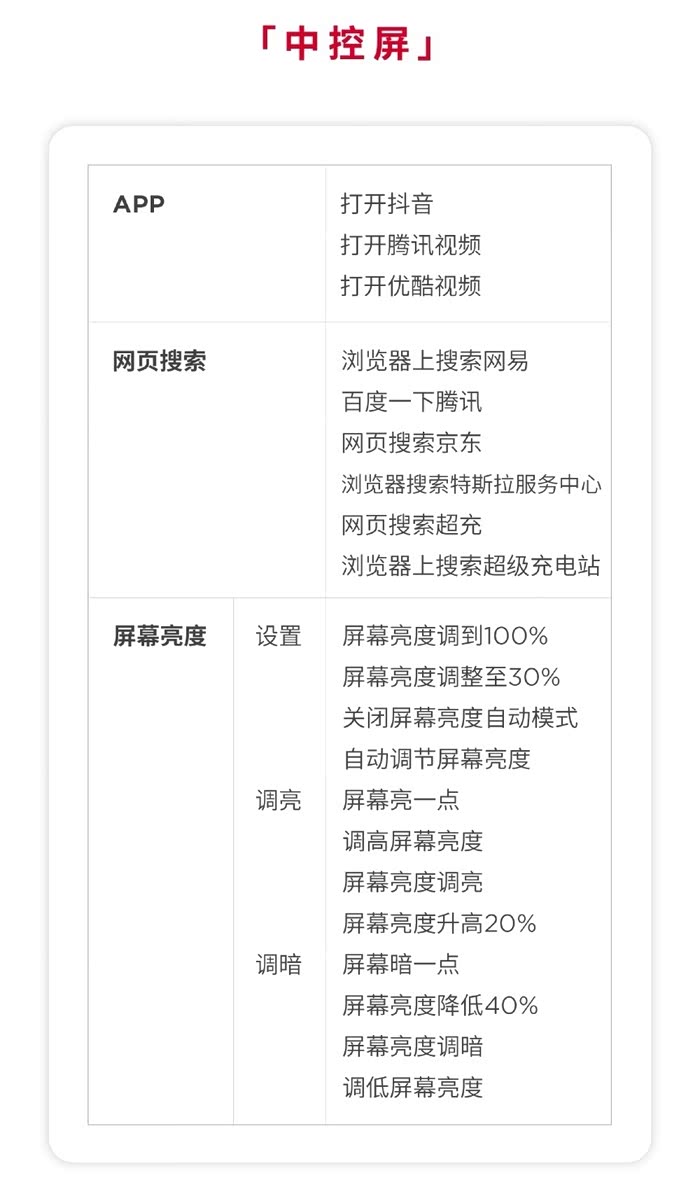 伴随着多次OTA升级,特斯拉智能语音控制系统也在多维升级中,优异表现持续进化!开车路上想要听歌、打开导航、调节空调温度……但是却没办法解放双手?使用语音指令即可帮你一键启动你想要的功能与服务!课代表更是贴心整理了语音指令大全,强烈推荐车主朋友们收藏!
