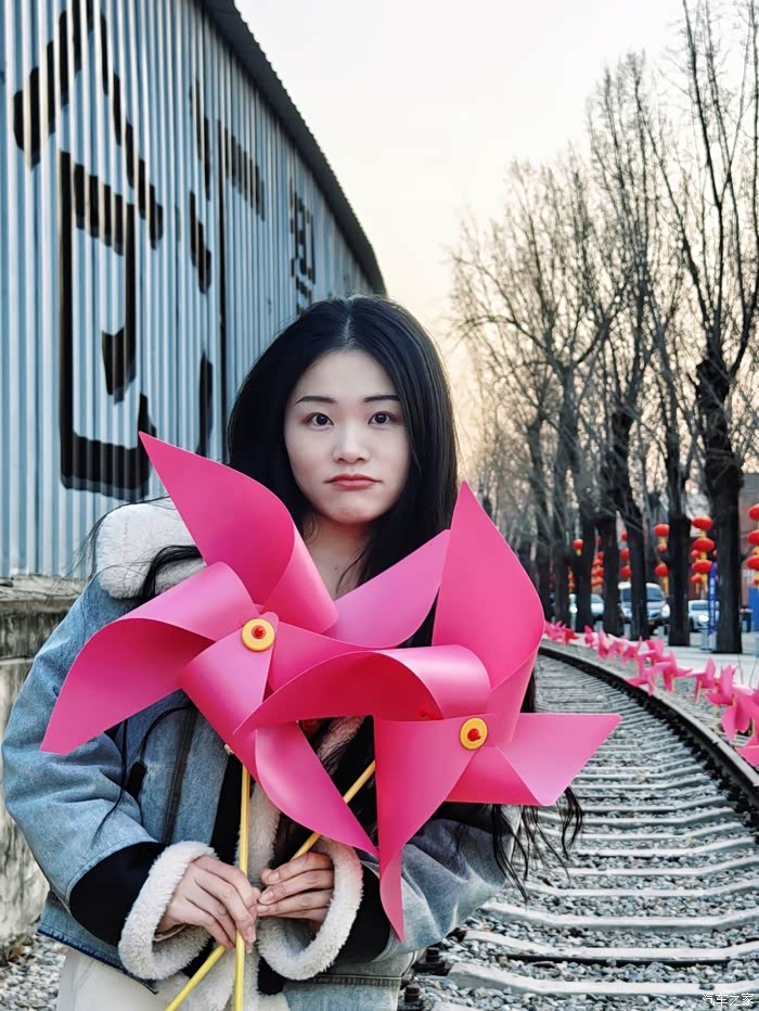 创1958园区除了红房子,还有一条满是红色风车的铁轨和一辆绿皮火车。把车停在绿皮火车前面,两种现代交通工具的碰撞。