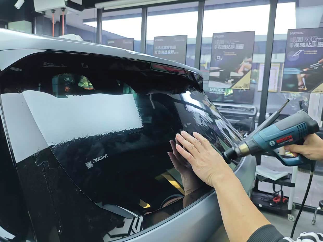 提车出门,朋友叫了板车拉去他们店贴车衣玻璃膜。当然,提车时,行驶证已经办好。