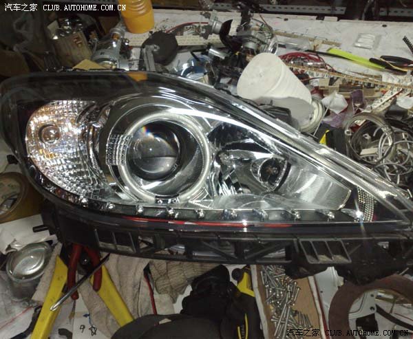 (在原来的灯体里加装了 1。可变远近光透镜。 2。“天使眼”。 3。氙气灯。 4。LED视宽灯。 5。LED灯光眼线。 6。琥珀款转向灯。)