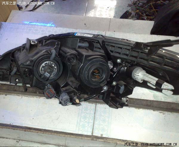 技师开始给眼睛做手术了!(因为网上找不到小五成品大灯的总成,所以唯一的办法就是开壳,然后植如想要的灯光了!