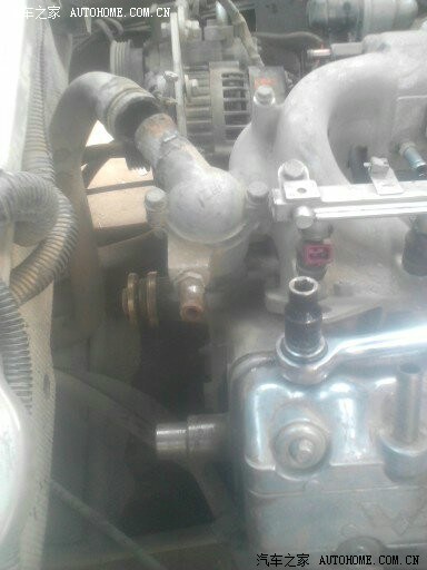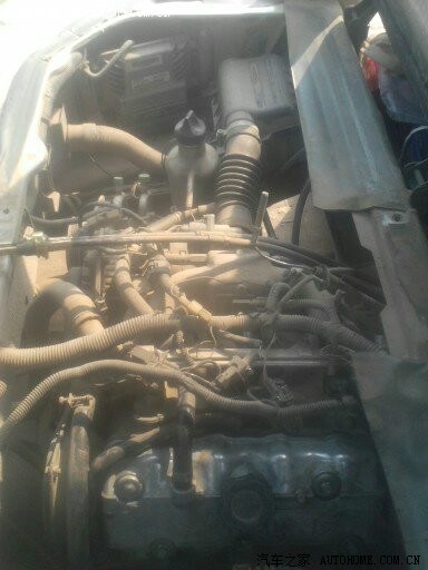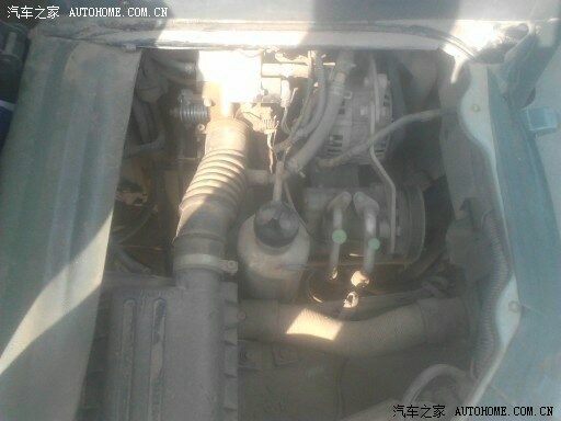 发动机右边图。看到一个不锈钢水壶没。那是自己改装的冷启动装置,纯手工制作。因为我的车已经改为烧甲醇的。没有这东东冬天早上打不着车。