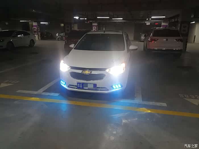打开大灯后行车灯自动变成冰蓝色,卤素大灯直接取下了灯泡,换成了LED的灯柱,不过此处建议有条件的同学最好是换大灯总成,因为LED灯不带透镜光会比较散,我这一直在市区的夜间路灯光照条件比较好才不想换了