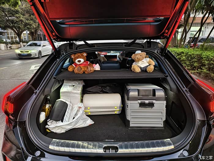 后备箱装载能力很强,4个人的行李问题不大,下面隔板拿出来还有一层可以放东西