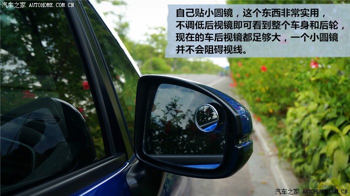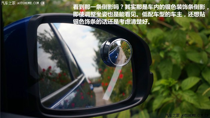 贴膜几乎是所有车主必做的一个事情,好的膜能有效阻挡紫外线和隔热,但颜色选择请慎重,我使用的是黑色膜,外面不容易看清楚车内,但弊端也大,在光线足够时还好,晚上时看后视镜就很不好了,雨夜更差!贴膜师傅没给我留一个小三角窗看后视镜,真是个很大的疏忽。