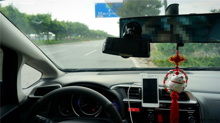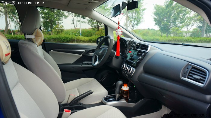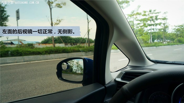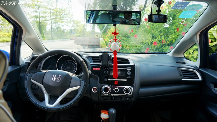 ▲很喜欢新飞度的全新中控,时尚,也足够实用,每个控制触手可及,曾经担心cd机的面板会变成指纹收集器,但实际使用下,这个担扰是多余的。整个中控比较高,如果习惯了大玻璃车型或者suv的车主,首次坐上新飞度的驾驶位可能需要点时间适应。请无视大视野后镜的影像。。。