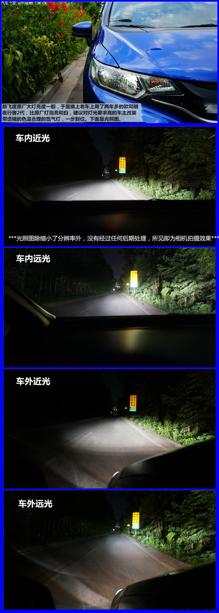 ▲很多新飞度车主都对国产后的大灯不满,没有装配帅气的LED大灯让更多车主选择了改装氙气灯。氙气灯的效果确实一流,当然前提必须是加装了透镜和选择合适的色温。我则是先换装了原来老富康上的夜行者2,下文会有光照图。