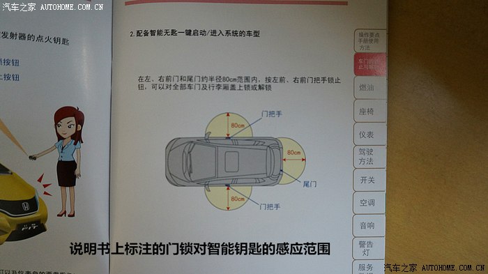 精英版飞度配备了智能无匙进入系统,钥匙在感应范围内,前门和尾门都能解锁(后门不能上锁,只能解锁)。前门是通过导体(猜测)进入门把手内侧产生感应解锁的,在门把手外侧是不会触发解锁的,后门是物理式按压开关。