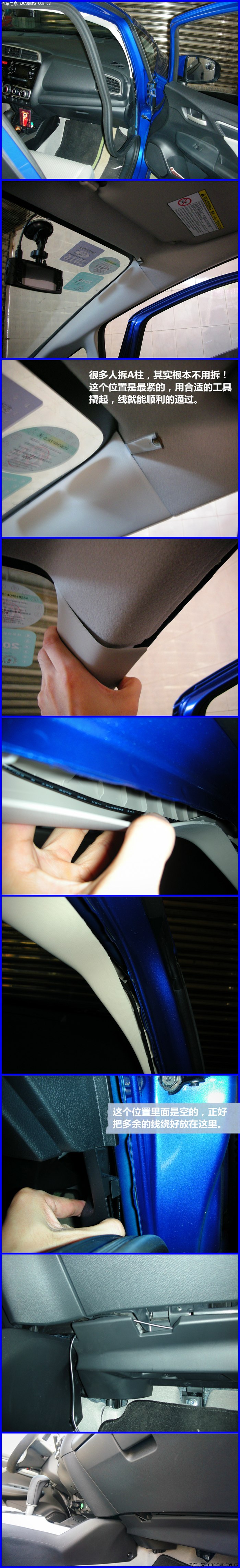 ▲非常迷你的u盘,小巧实用!跟新飞度的特性很一致嘛!旁边是行车记录仪的插头,下面我们看看记录仪的拉线,非常简单(拉线时并无拍摄,下面的图是后期补拍的)。