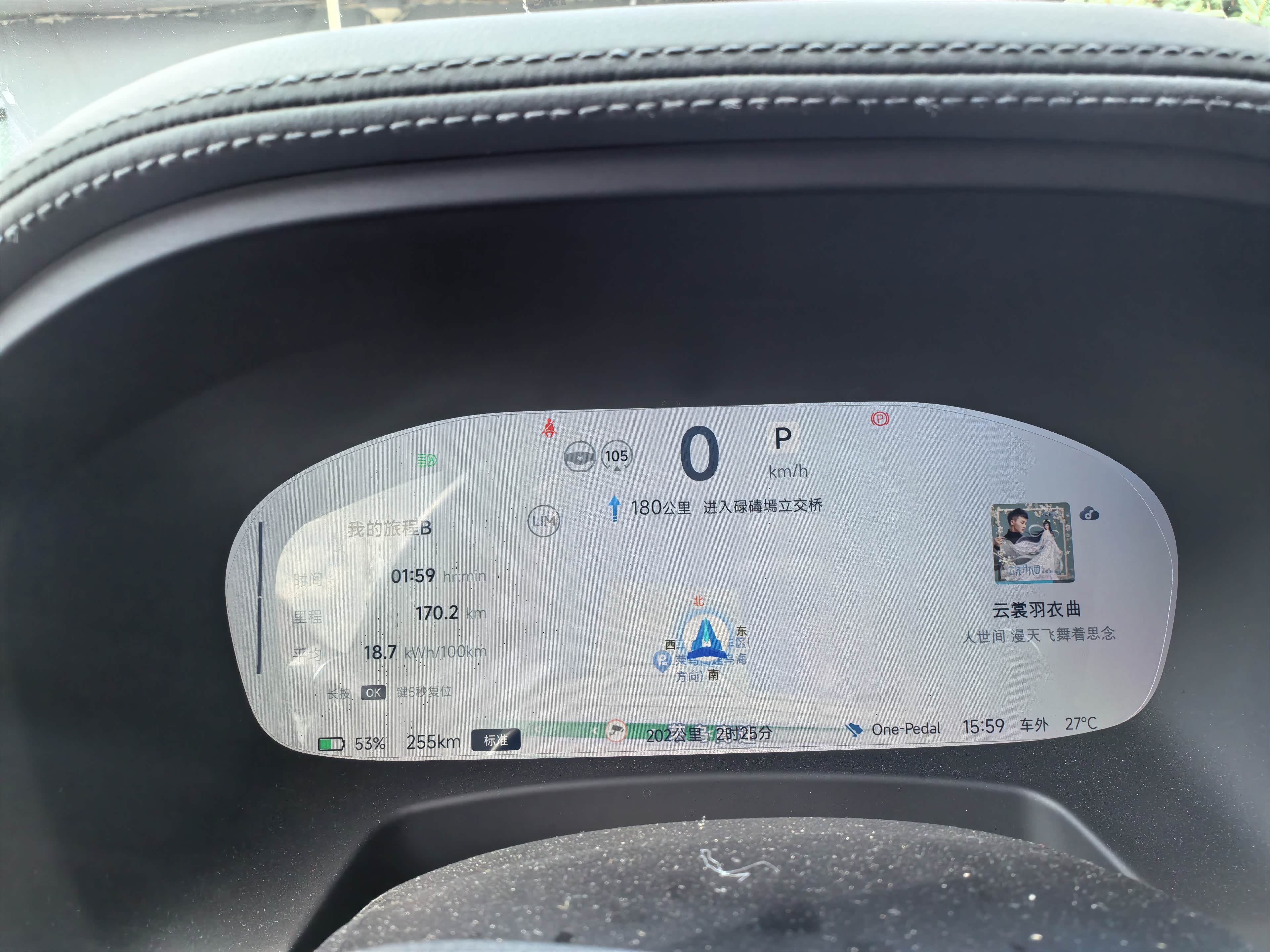 返程就轻松多啦!一路下坡,续航达成率肉眼可见地蹭蹭涨,393公里平均电耗15.8,到家还剩10%的电。而且全程开了L2辅助驾驶,手脚都放松了不少,6个多小时的路程开下来也没觉得累,平均速度65km/h,舒舒服服就到家了。