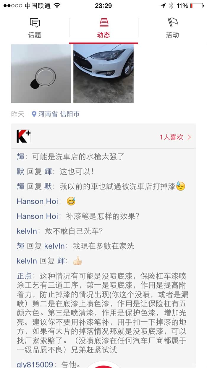 车提回来了。 由于是天黑进城,黑灯瞎火的没人看到。 第二天白天,我把车就开出去逛逛。 结果可想而知,小县城里突然出现了一辆特斯拉!!!?????? 回头率那是! 然后本地贴吧也出现了帖子问特斯拉情况的,哈哈哈。由于挂的是上海的临时牌照,他们还以为是过路的外地车,??