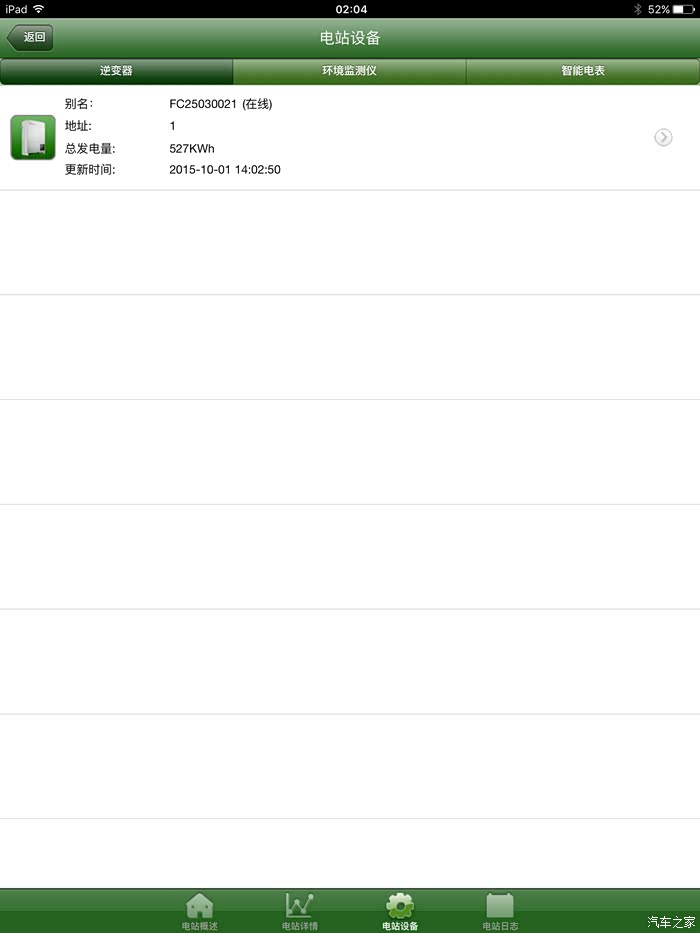 现在是物联网时代,逆变器上装个wifi模块,手机上就能看到系统情况。九月一号安装好并网,中间一个多星期在下雨,一个月发了527度电,够大白跑2800公里。