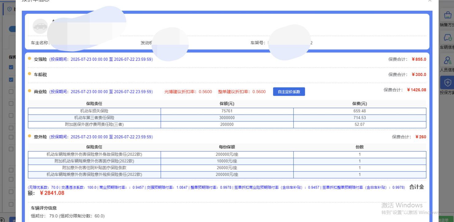 今年同样还是按去年的标准去买的,主要就是车损,三者,医保外用药还有座位险加交强险。因为去年没出险所以今年的车险是有降低的,去年价格在3200左右,今年的价格在2800左右,其实便宜了不少。