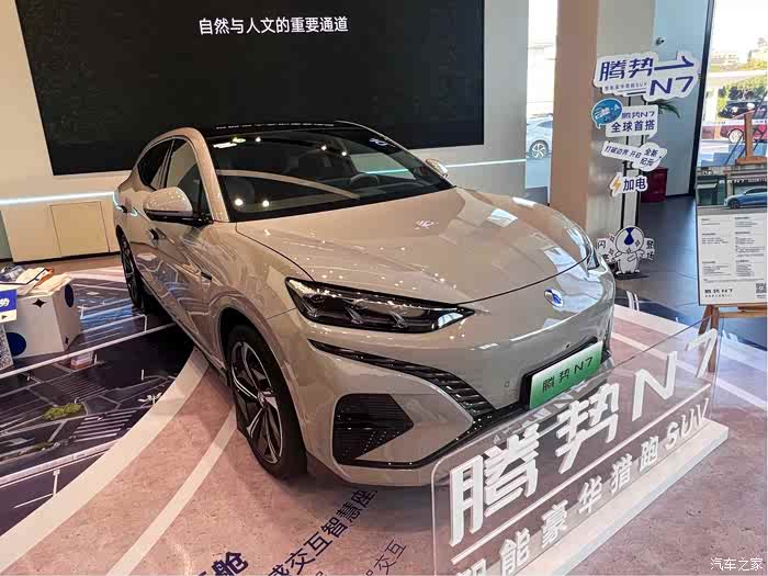 在商场偶然间瞥见N7,发现这车挺有意思,正好有辆油车要更新计划,所以进店好好看看,整个车身设计的很圆润,车身覆盖件的缝隙均匀、平缓,看起来比较精神。走近时,前脸设计也很有特色,长条形内嵌星星式的熏黑大灯,散发出一种运动气息。大灯下方,中网两端的日系灯就像是两条神奇的“龙皮七星鞭”,镶嵌在前脸上,给整个车头增添了一份神秘感。而在雾灯盖板旁边,还有两颗激光雷达,就像是一双锐利的眼睛,注视着前方,整体的黑色搭配看起来另有一番风味,是我喜欢的类型