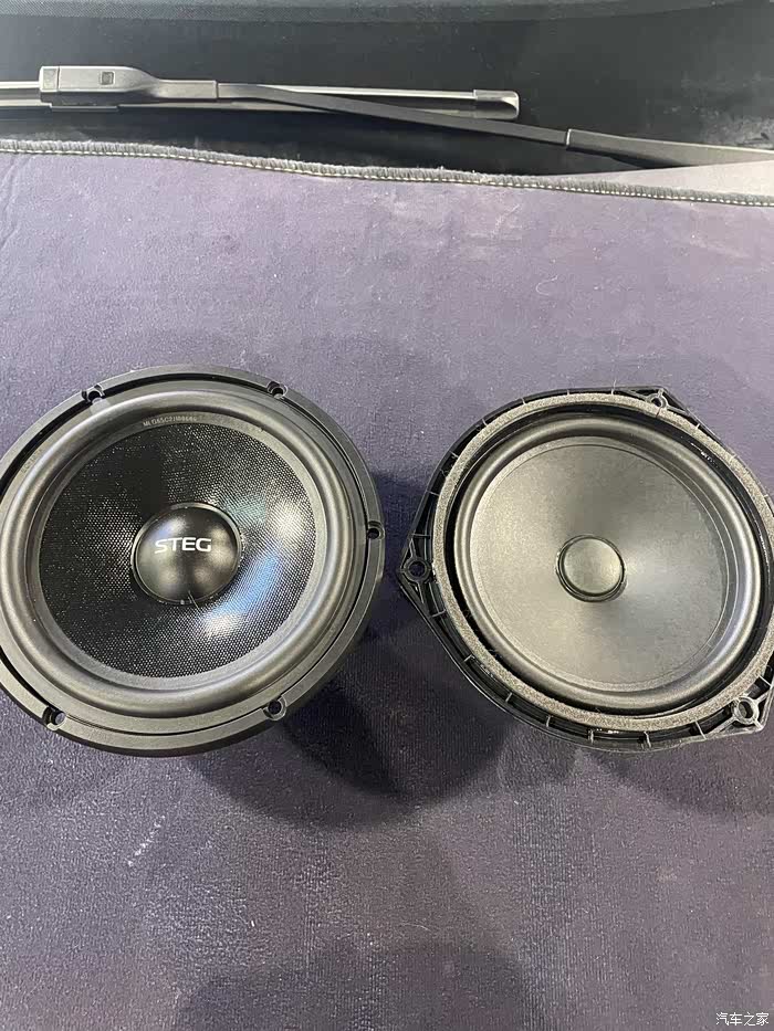 新喇叭和原车喇叭对比,与原车喇叭对比磁铁更大,做工更精细。