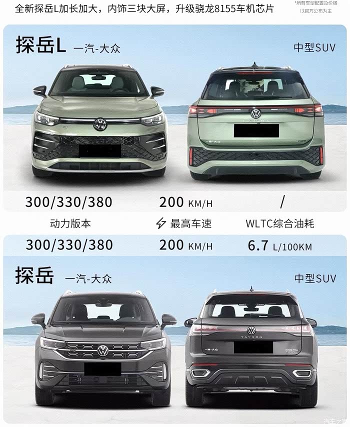 总的来说,新探岳L在外观、内饰、空间和科技配置上都有升级,更适合年轻人和对生活品质有要求的家庭,我更加倾向于买探岳L!