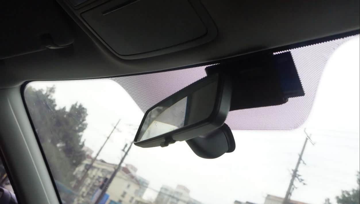 后视镜很清晰,顶上带有一个放眼镜的小盒子,太阳刺眼的时候只要抬手就可以了