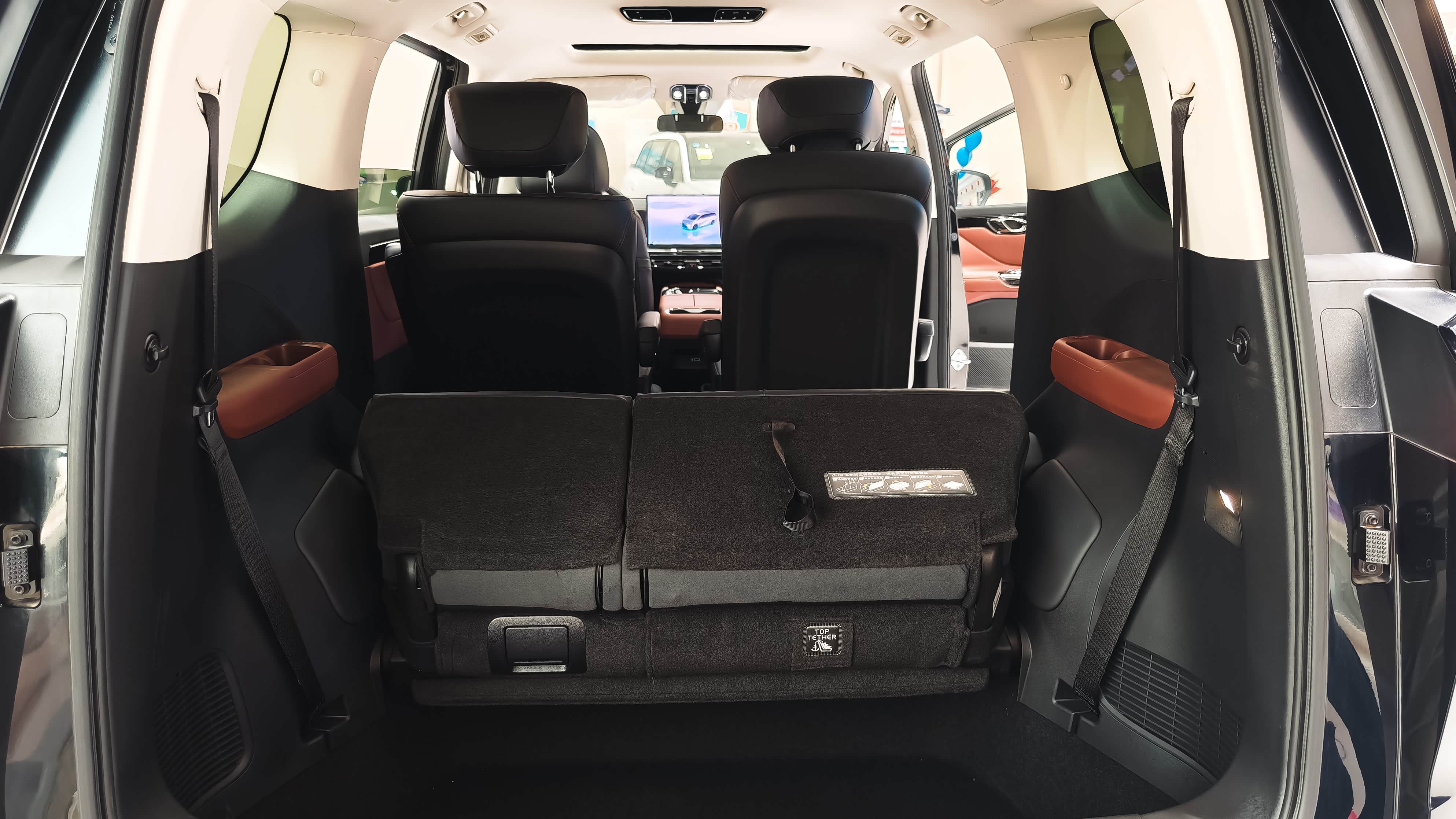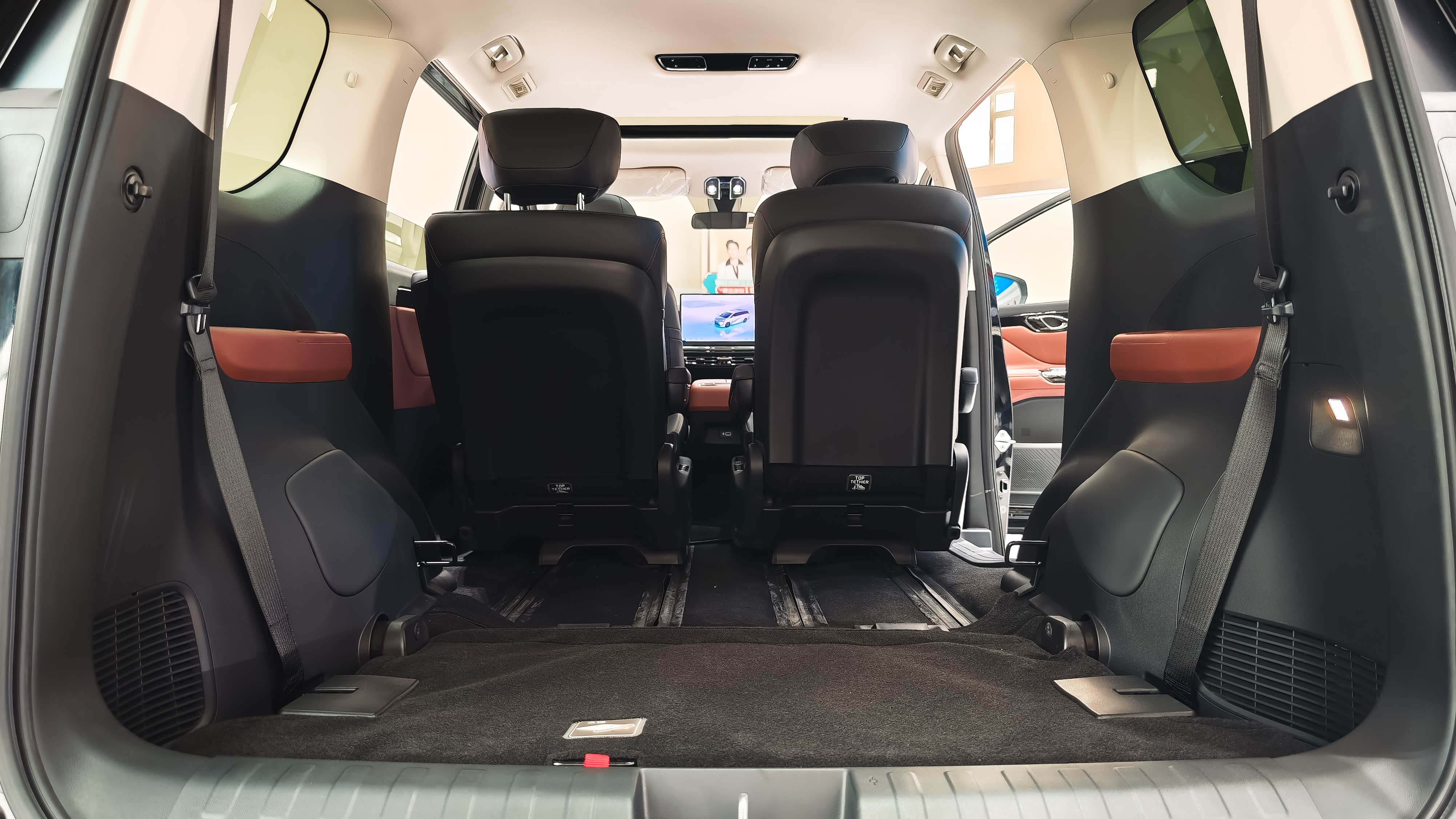 车身4920mm*1900mm*1760mm,轴距干到2930mm,我调完主驾,后排腿部空间直接超三拳,头顶空落落的完全不压抑。目测7座布局满员坐一家老小一点不挤,座椅还能切换6种模式,二排移开就是大四座,孩子在后排随便折腾,三排翻折直接变观景茶座,周末钓鱼喝茶也太惬意了。