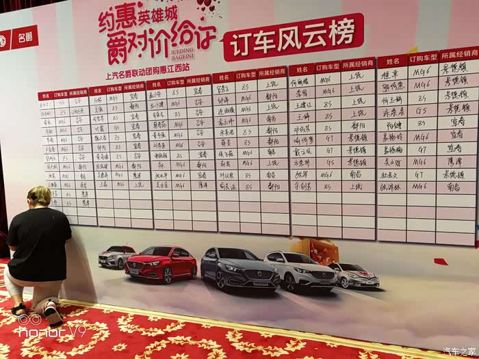 等我们订完车领完礼品在订车榜上就已经很多人了,而接下来的抽奖环节更是让大家期待,在美女主持人的带领和现场分发的烤箱、电饭煲、无叶风扇、洗衣机、液晶电视等等礼品的刺激下活动现场那叫一个火爆。