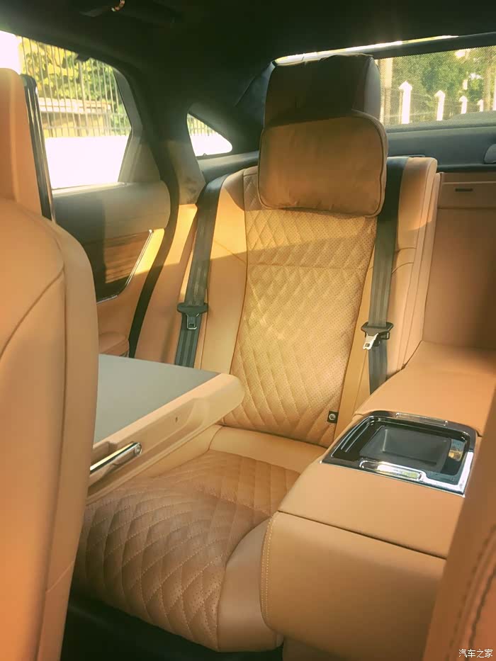 后排由于桌板占了空间,腿部空间没有S级,7系那么宽敞,和帕拉梅拉差不多,座椅舒适度一般,细微差距主要在后排腿部空间偏小,座椅没腿托