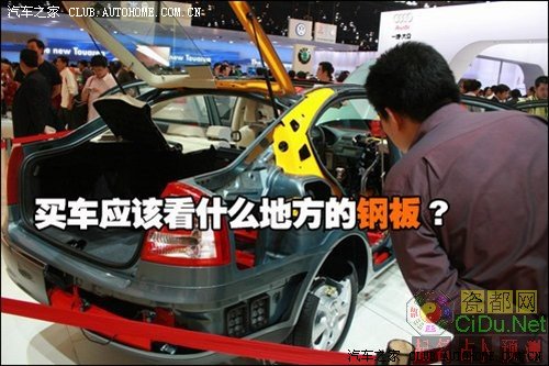 在富丽堂皇的销售厅,我们常常能看到这样的情景:专心的买车者半蹲在车旁,用手在车体上敲过去敲过来,聆听车身钢板发出的声音,想从此车身钢板是否“厚道”的判断。遇到一些细心人士,还会在车门、引擎盖,特别是翼子板上,练起“二指禅”。用来按下车身的钢板,试试它们是否发生变形,以此判断车身的强度。然而专家又告诉我们,车身要有吸能区,并不是钢板越厚越好。又人有该问了,那车身结构就该越薄越好吗,我们该看什么地方的钢板,别着急,答案在下面