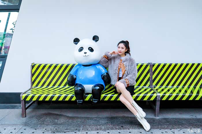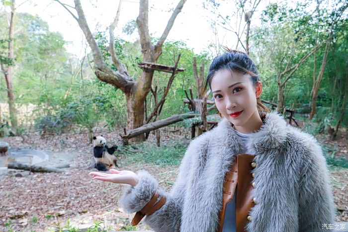女人在看到小动物的时候,似乎就会变得少女心起来,宝儿拉着我调皮的说让我给这个小熊猫模型拍个照。