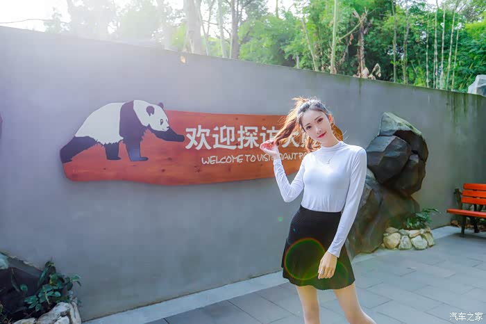 宝儿又调皮的在熊猫基地的门口拍了几张照片,这气质和刚才是完全不同,甚至有不少**的气质。