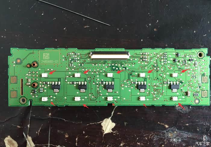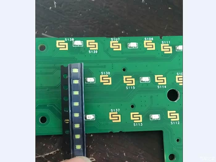 拆下主板可以看到十个3528的LED贴片。这个贴片是橘黄色的,这次要改的地方就是这里。