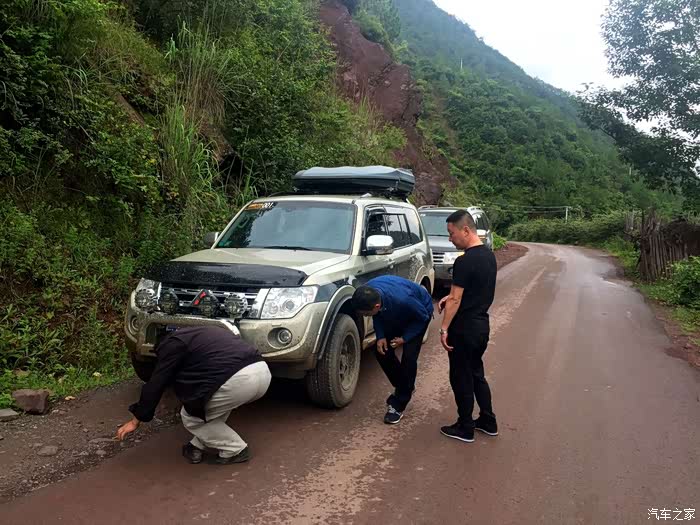 上山途中,001的车果然出状况了,底盘老是有声音,方向也跑偏