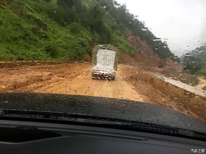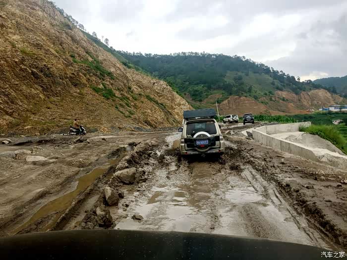 车队暂时分开行进。没想到正在修路,又在下雨,真的开始越野了